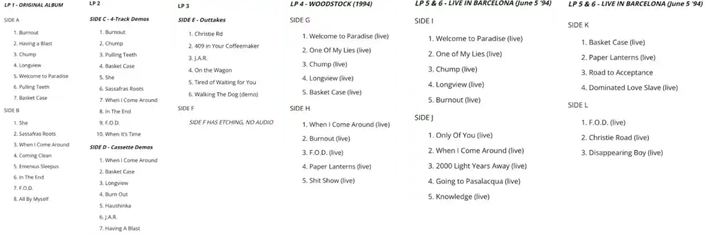 Elsewhere among the rarities is the long-awaited release of the re-recorded version of ‘Christie Road’ (Kerplunk) from the Dookie sessions that has never publicly circulated along with the re-recorded version of ‘409 In You’re Coffeemaker’ (Slappy EP).